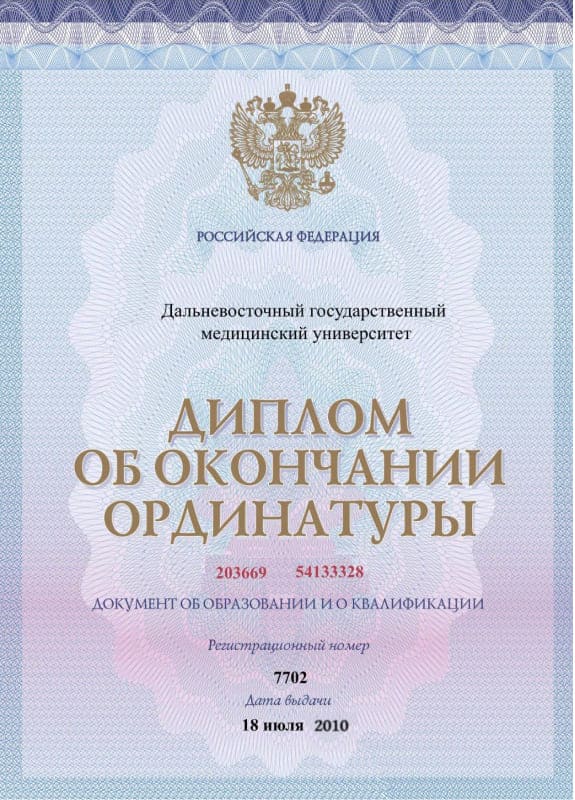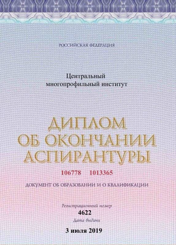 • 2019 — Ростовский государственный медицинский университет (психиатрия-наркология)